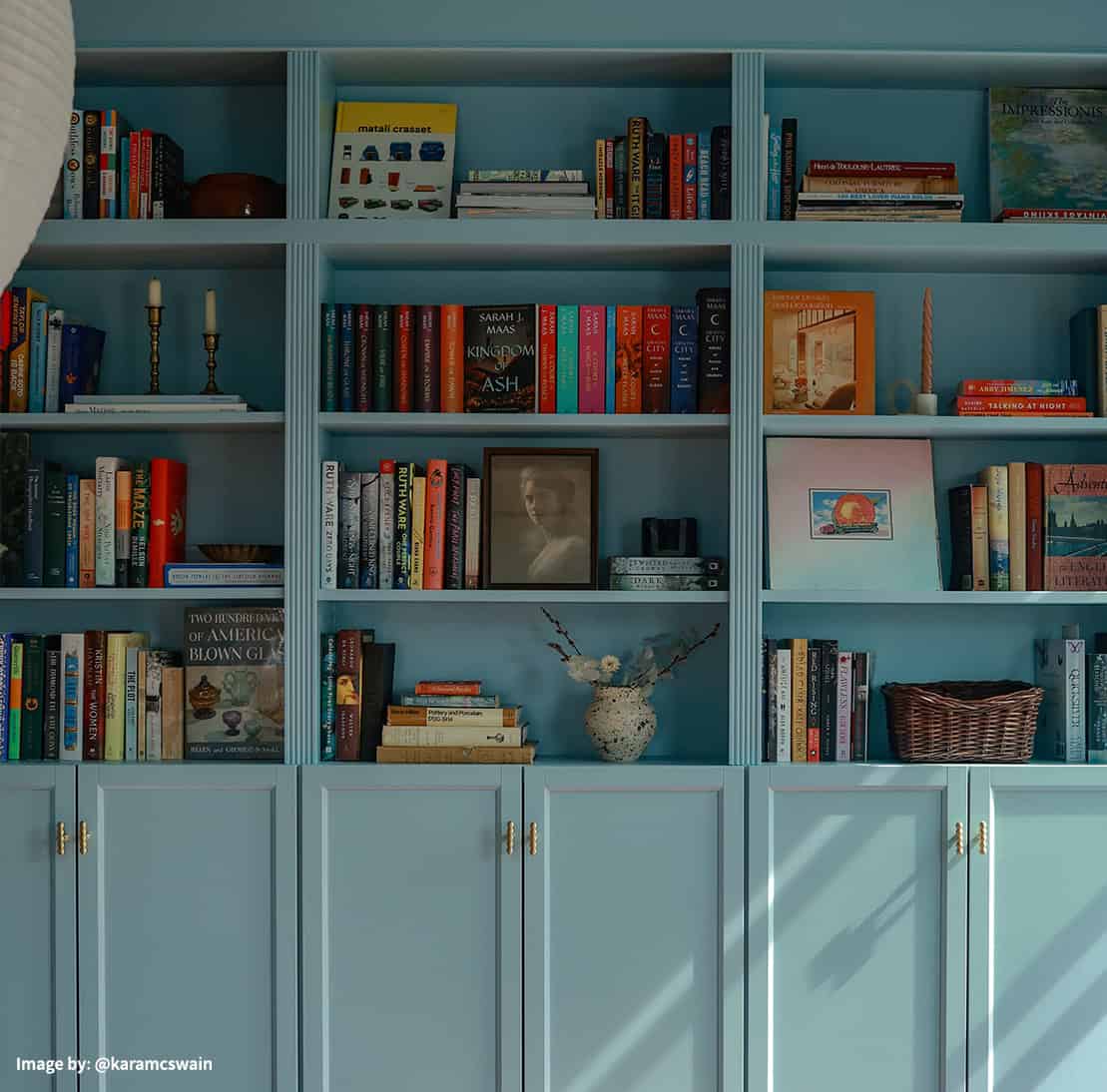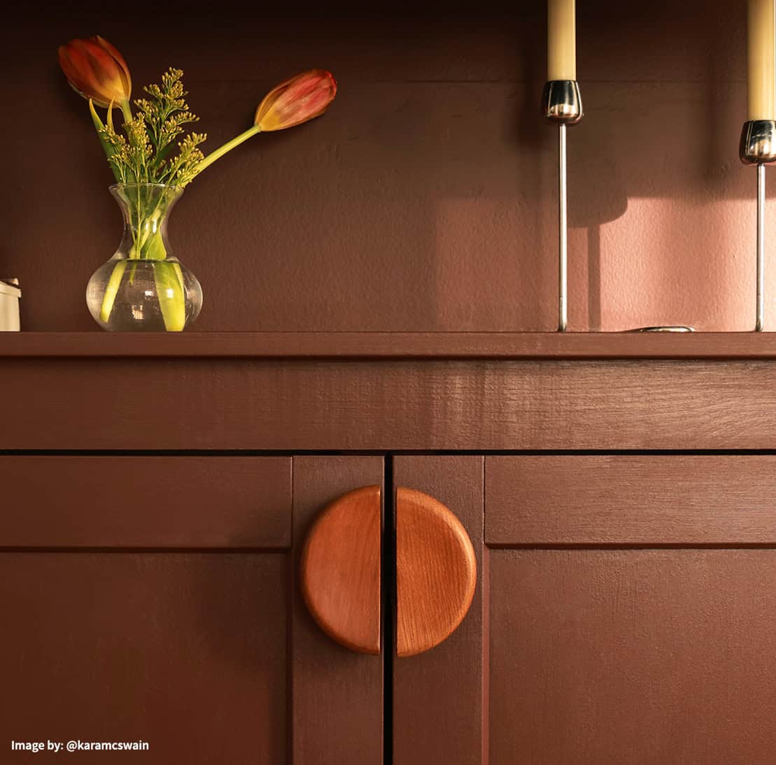 Hardware can be chosen to complement other design elements in your kitchen or bathroom space, such as the tiles and paint colours, or it can be used to create distinction and contrast. In a minimalist design scheme, in which tiles are black and white and paint neutral, you might consider choosing black aluminium hardware for a seamless look. In a more flamboyant, Cottagecore kitchen — in which eclecticism is key, your hardware choice might be more standout, like BOBBIN Pulls in brass. Imperfect zellige tiles in punchy colours, plus butter-yellow paint, would only add to the busy look.