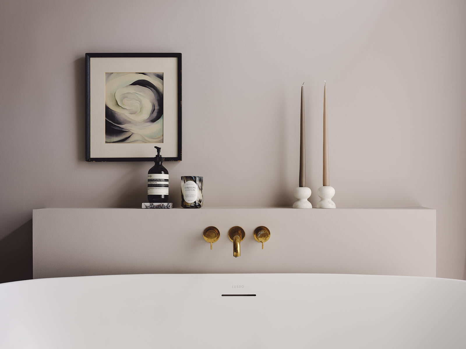 The colour decision was intuitive and helps make it feel relevant. I need a neutral palette in a bathroom, it supports that feeling of calm. I chose a warm neutral for the walls and a soft, warm white for the ceiling. Where the space begins to feel modern and relevant is in the tiles…